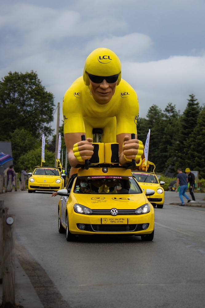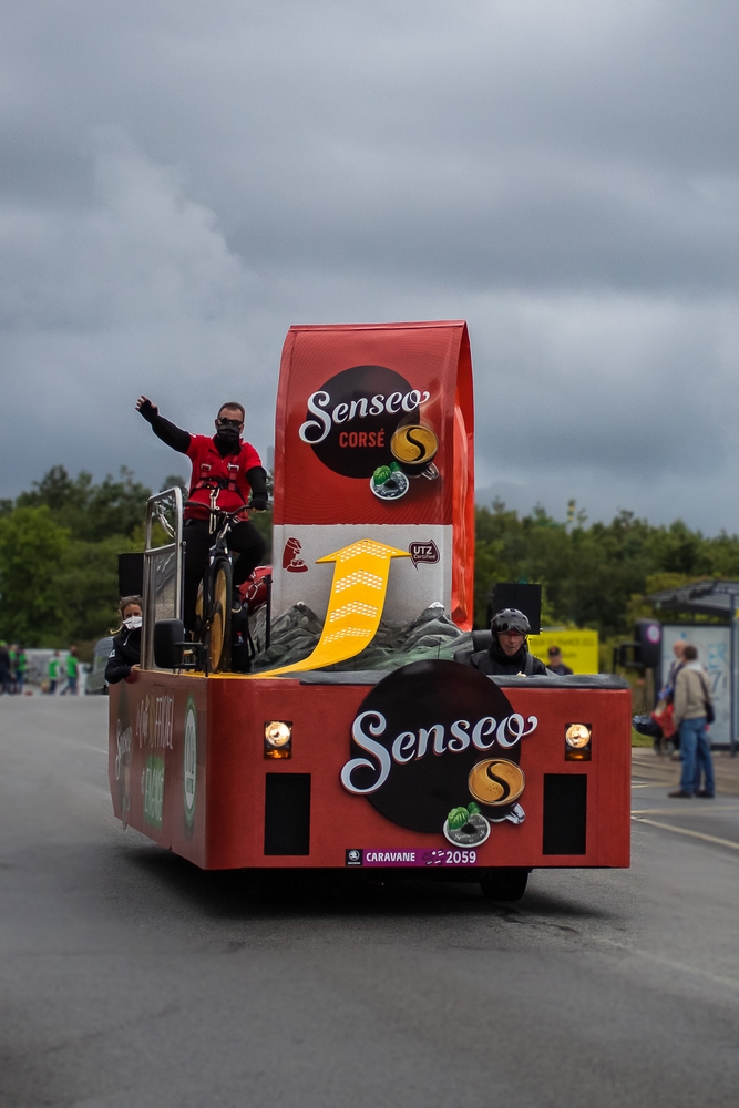 Je vous avoue que c’est finalement, la caravane qui passe avant que j’apprécie le plus. Un régal pour les photos, contrairement aux coureurs qui passent tellement vite qu’il est difficile de faire quelque chose de chouette.