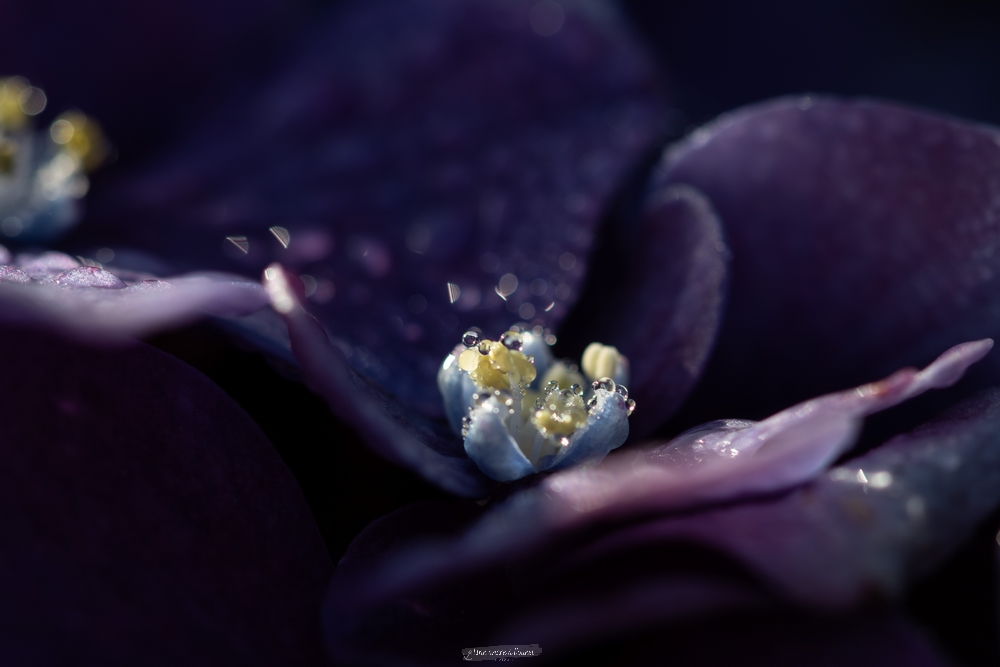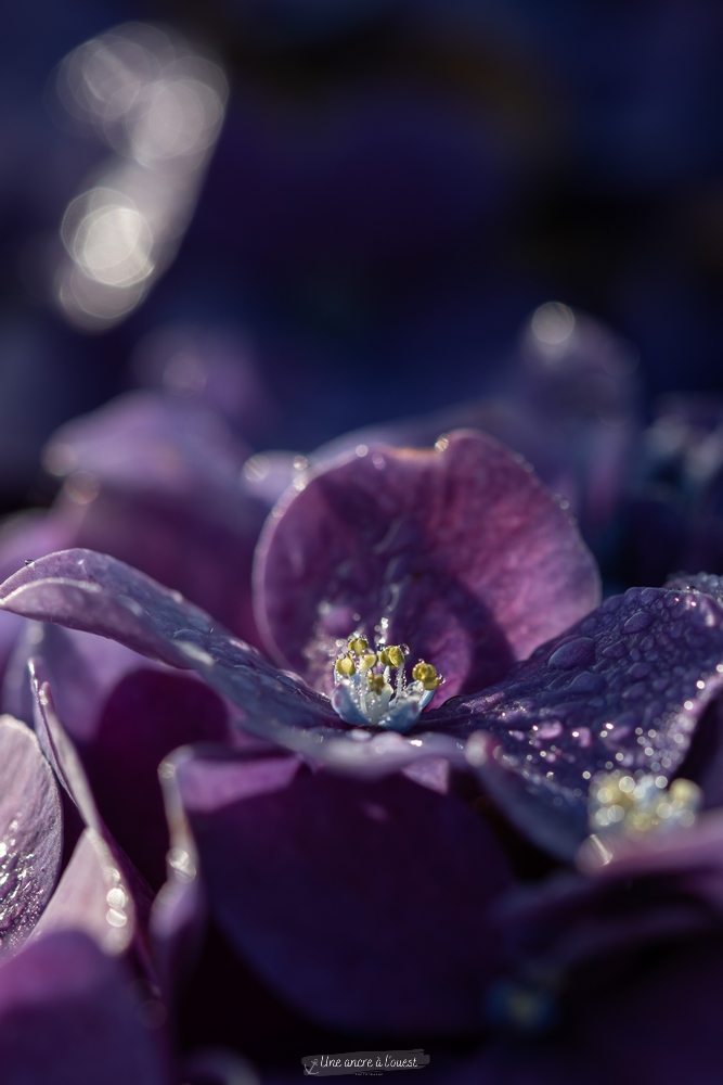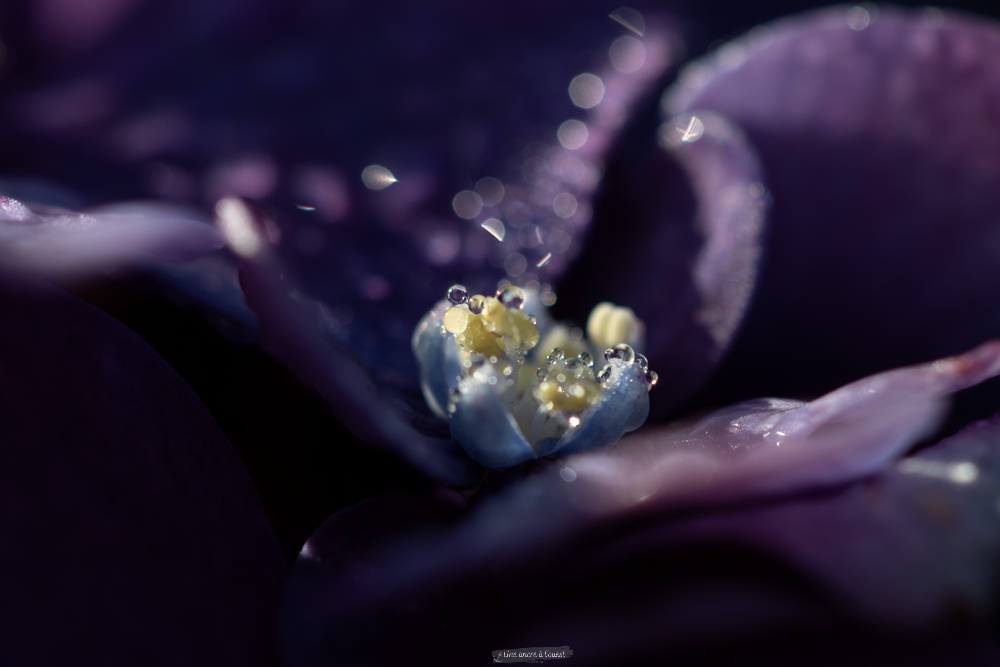 J’en ai profité pour aussi faire quelques macros de la rosée sur les Hortensias.