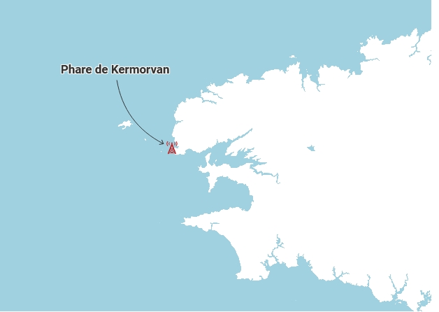 Le phare fut construit en 1849 sur un rocher d’une hauteur de 20,30 mètres. Il est relié à la terre par un pont de granite, le phare de Kermorvan a la forme d’une tour carrée. Il est télécontrôlé depuis Ouessant. Il est accessible à la visite l’été à partir du 1er juillet 2022.